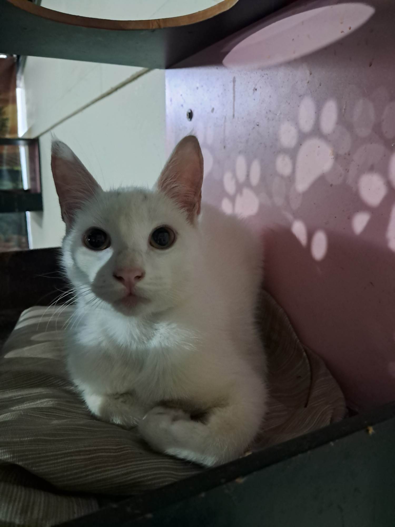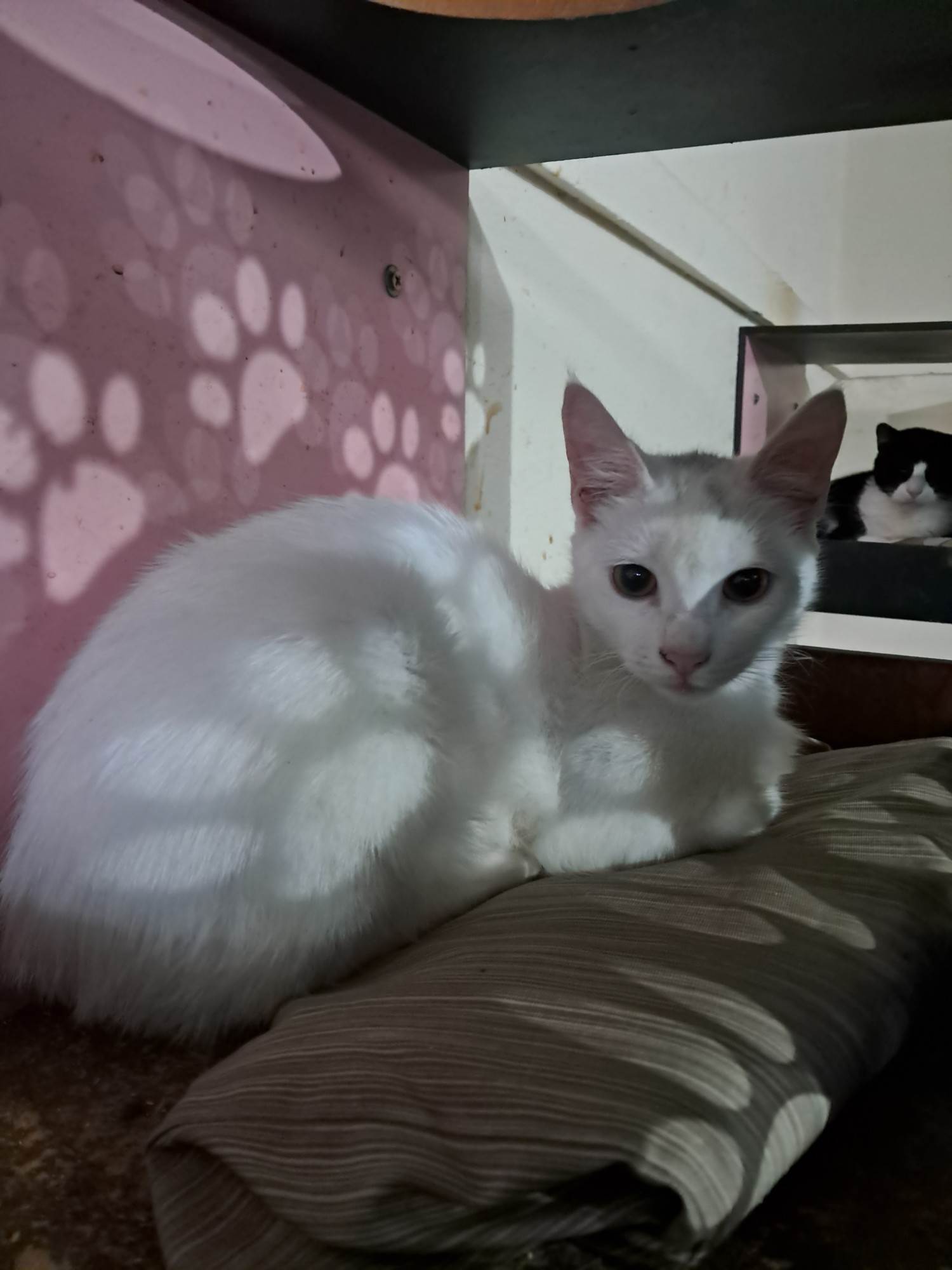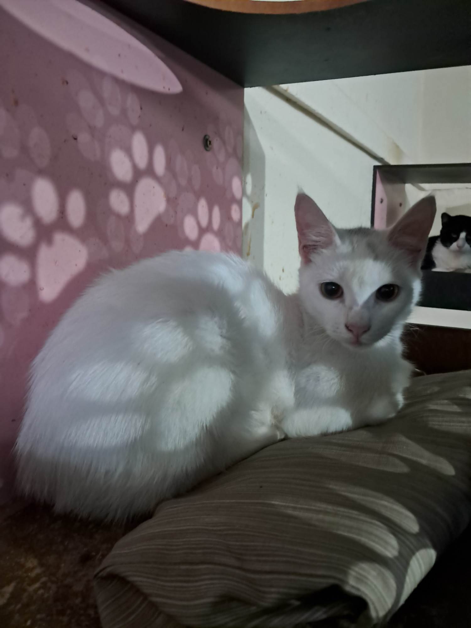 Gato pequeno, 7 a 11 meses, SRD-ViraLata, cor Branca.